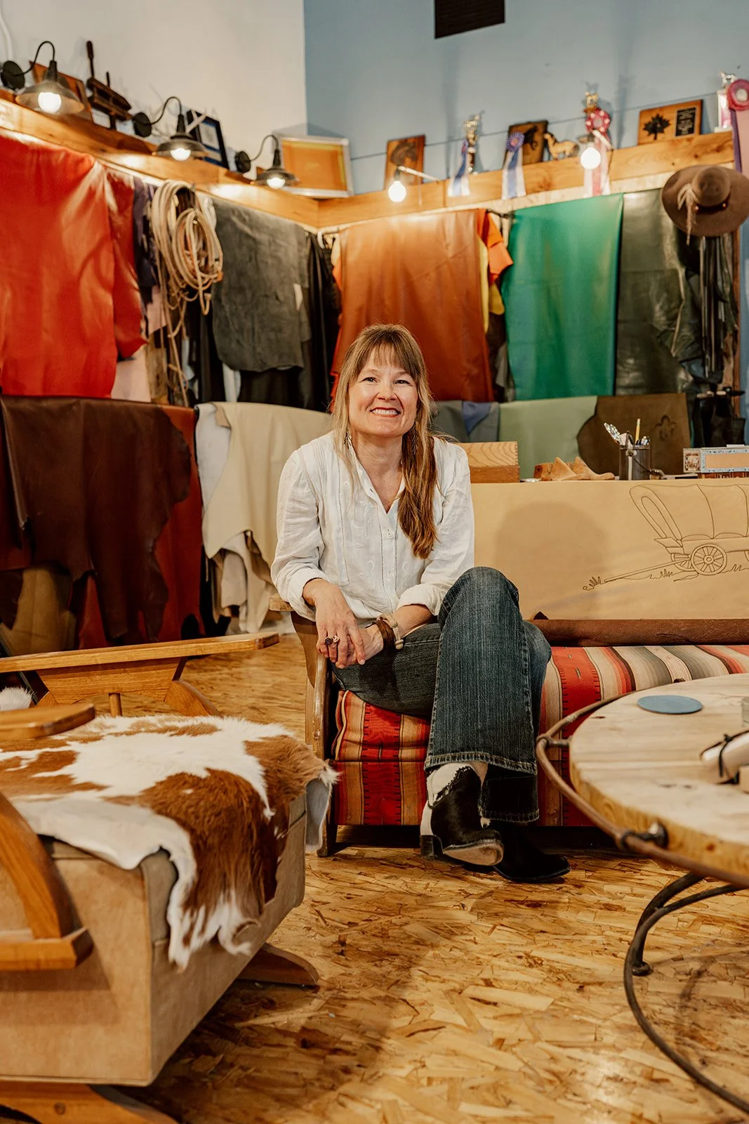Chase DeForest creates collaged and stitched leather artworks broadly exploring themes surrounding cattle, horses, landscapes - the American West broadly. She uses hides as a conceptual jumping off point for her subject matter. The artwork celebrates the history and many compelling properties of leather: supple, durable, flexible and fun.